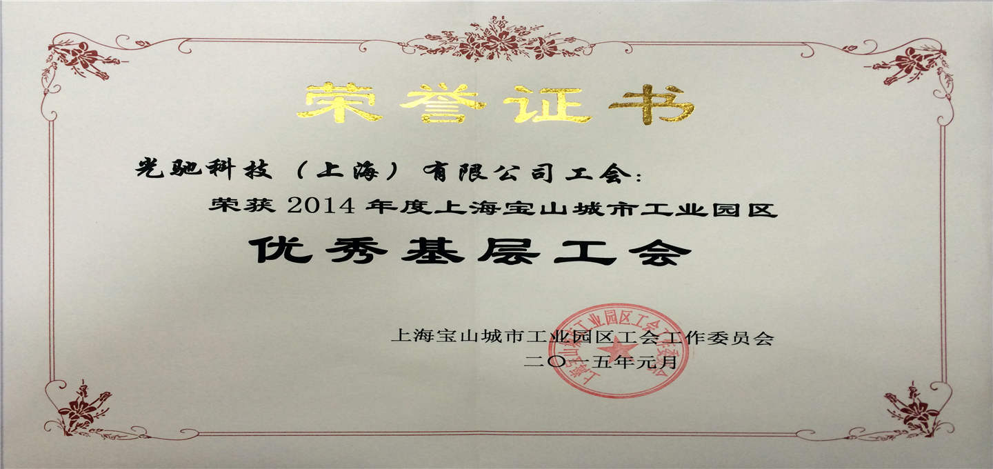 榮獲“2014年度寶山城市工業(yè)園區(qū)優(yōu)秀基層工會”